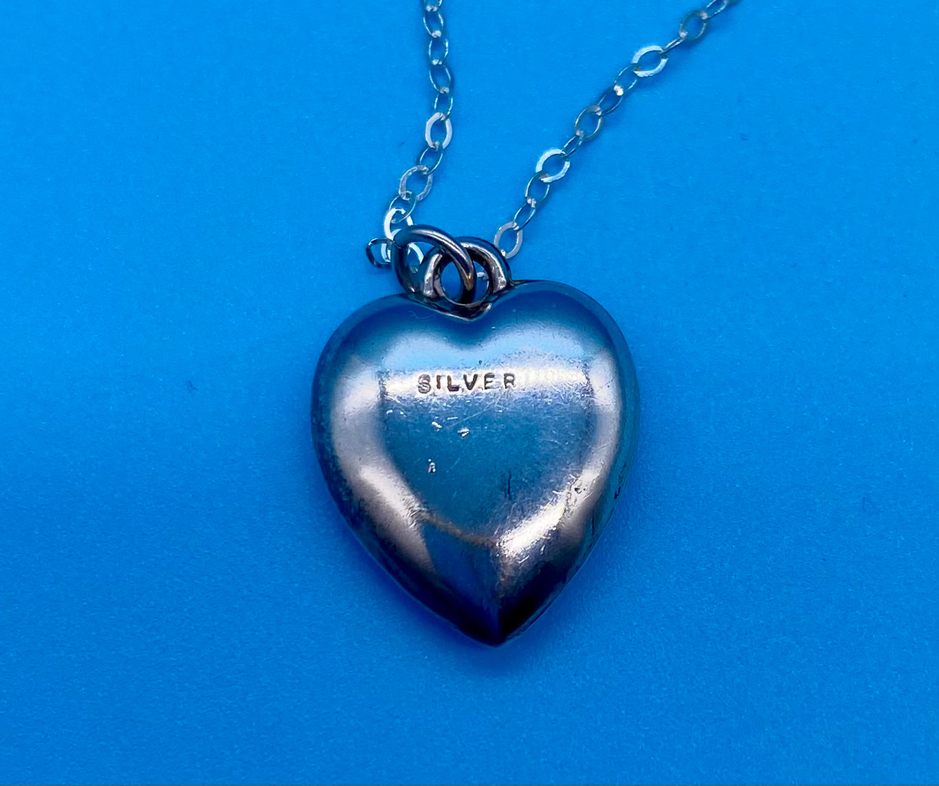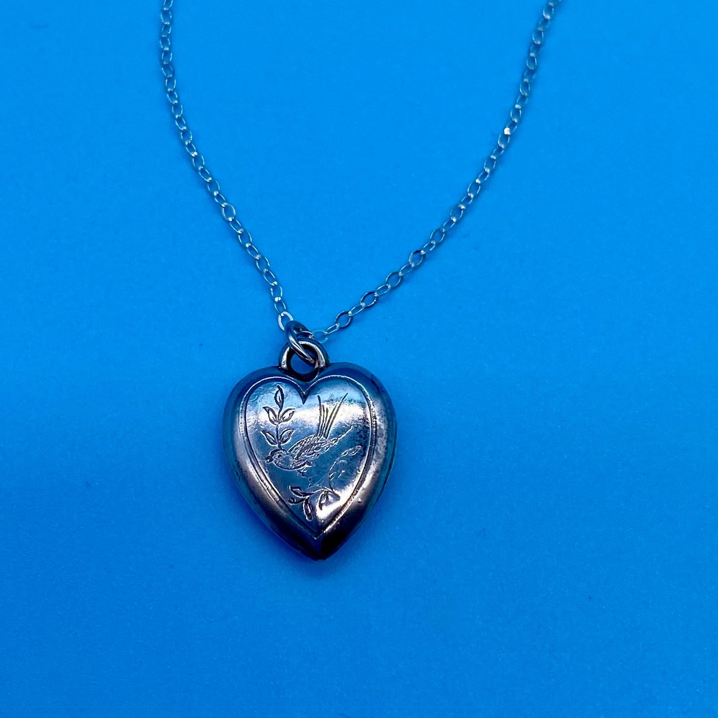 This beautiful antique heart pendent is circa 1900. It is from the Victorian aesthetic movement where designs shifted towards a more delicate beauty rather than mourning or sentiment. Flowers, birds and stars reflected a deeper fascination with nature. This pendent is made from Silver, which is marked on the reverse of the piece.