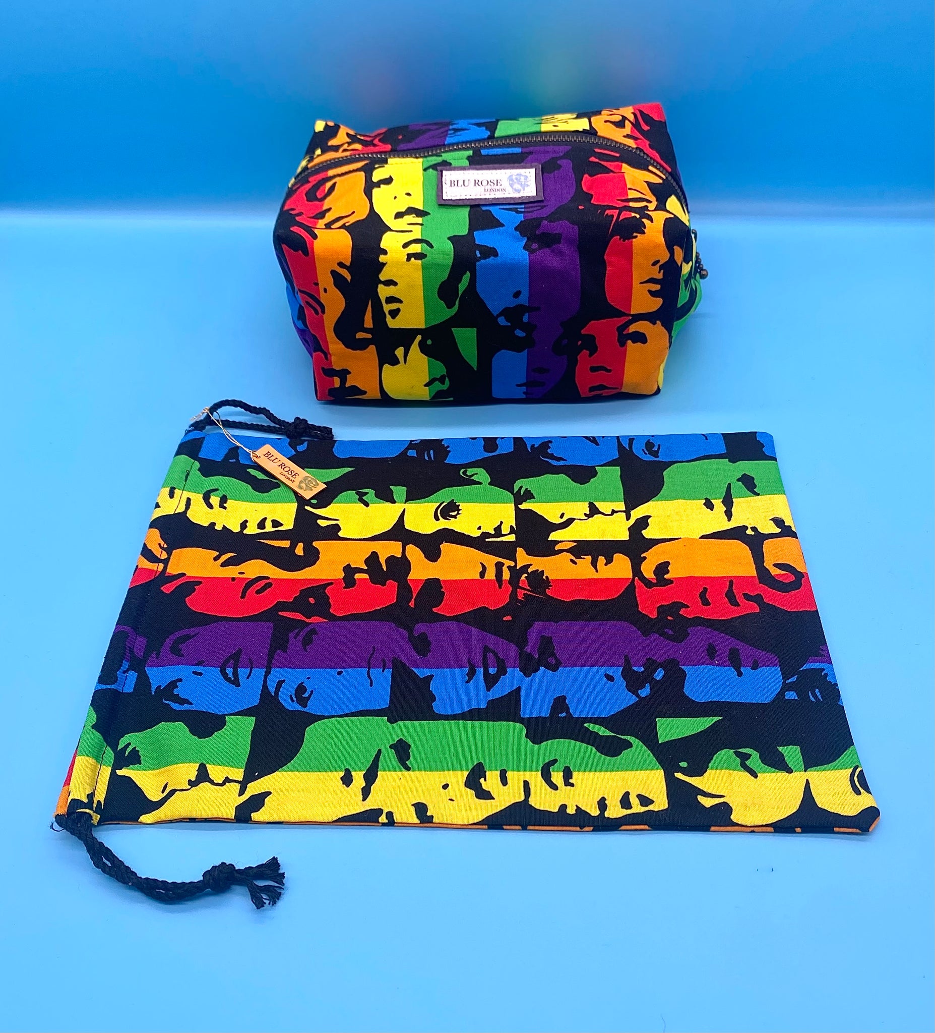 This handmade vanity bag has a colourful print featuring many music & fashion icons from Twiggy to Elvis to the Beatles ( see if you can spot anymore!)