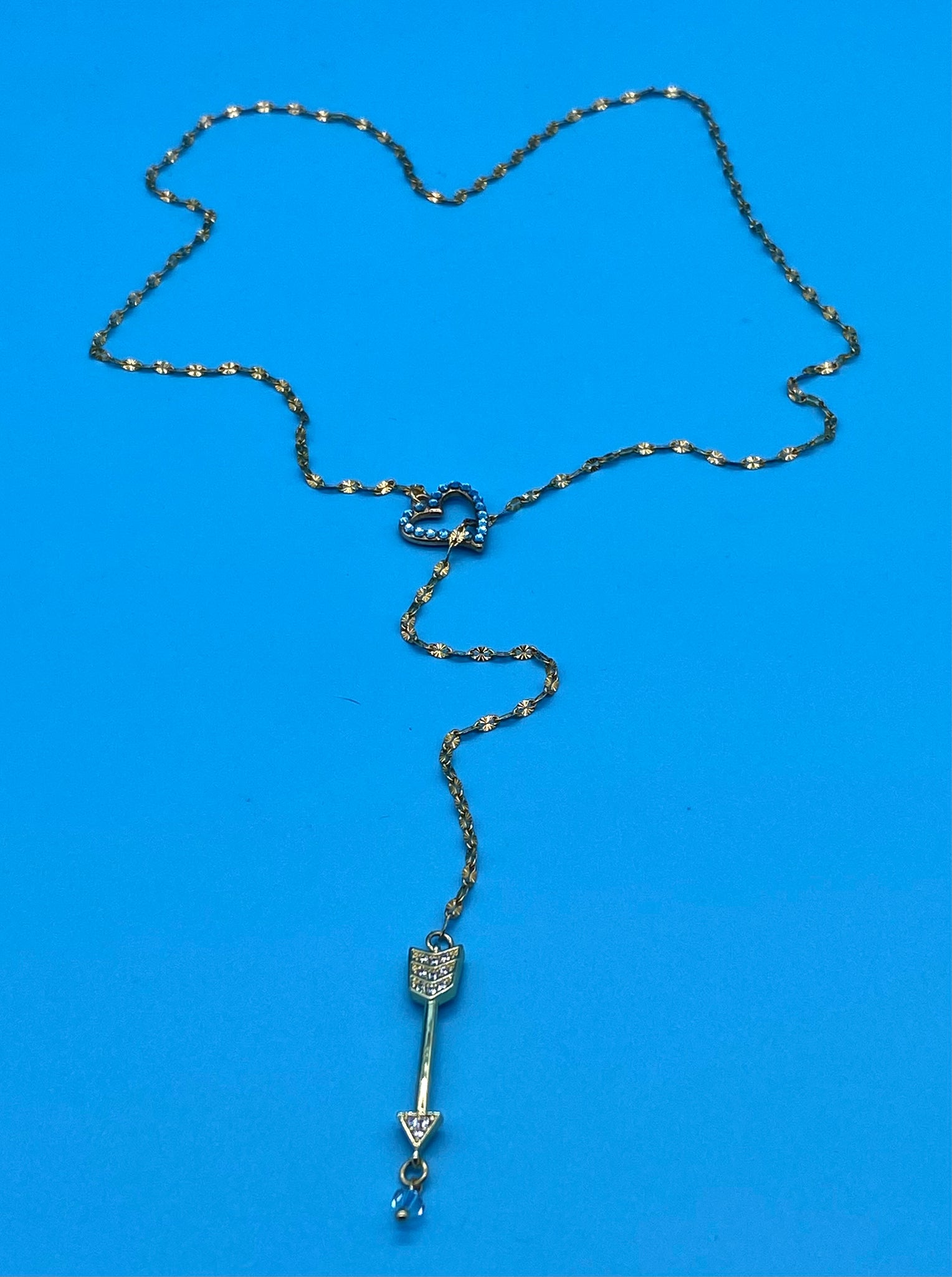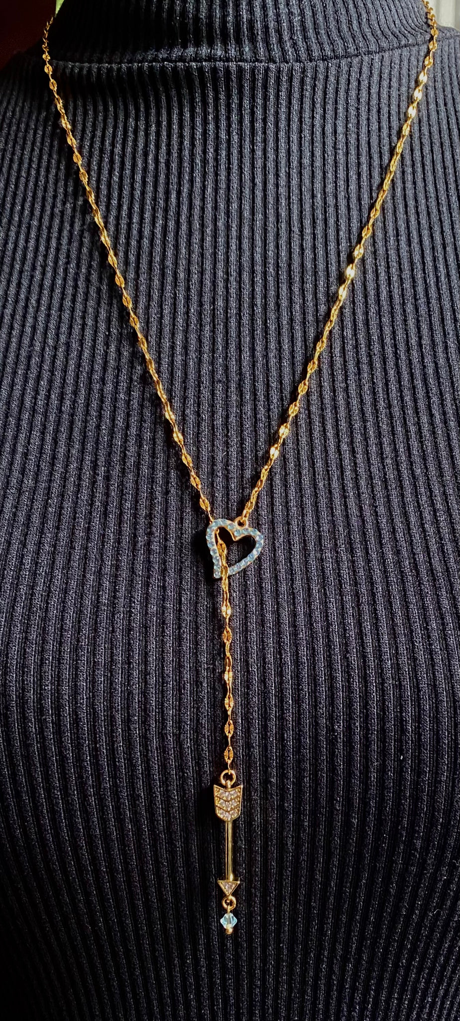 Indulge in refined elegance with this exquisite handmade lariat necklace, crafted with an 18k gold-plated lip link chain for a radiant, timeless finish. Designed with effortless sophistication, this piece features a seamless fastening - where a delicately sculpted arrow glides through the heart to secure the necklace with graceful ease.