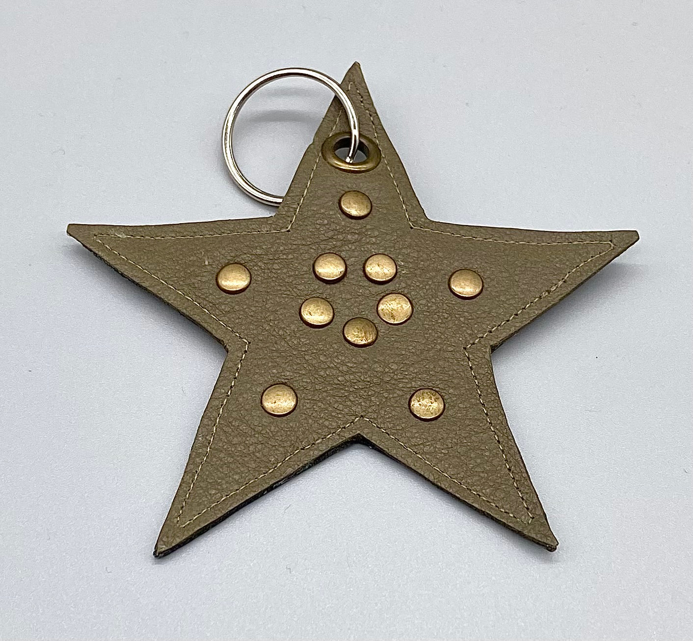 This gold studded leather star comes in a khaki shade. Perfect for adding that extra fashion touch to your bag or keyring