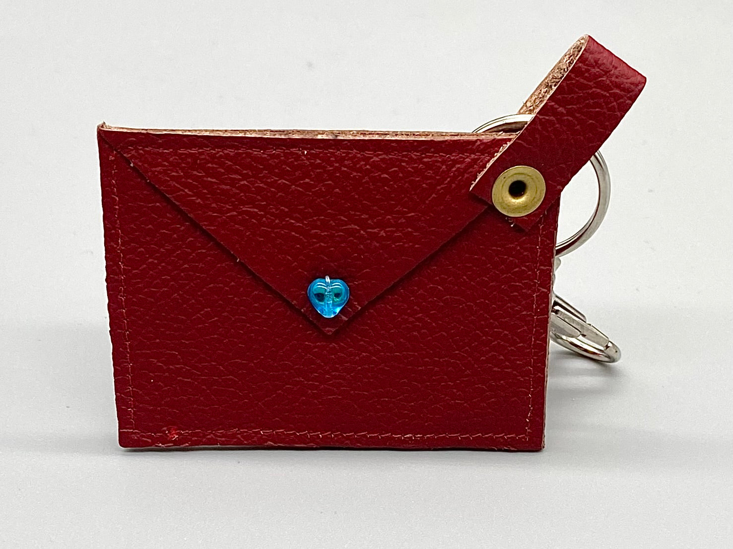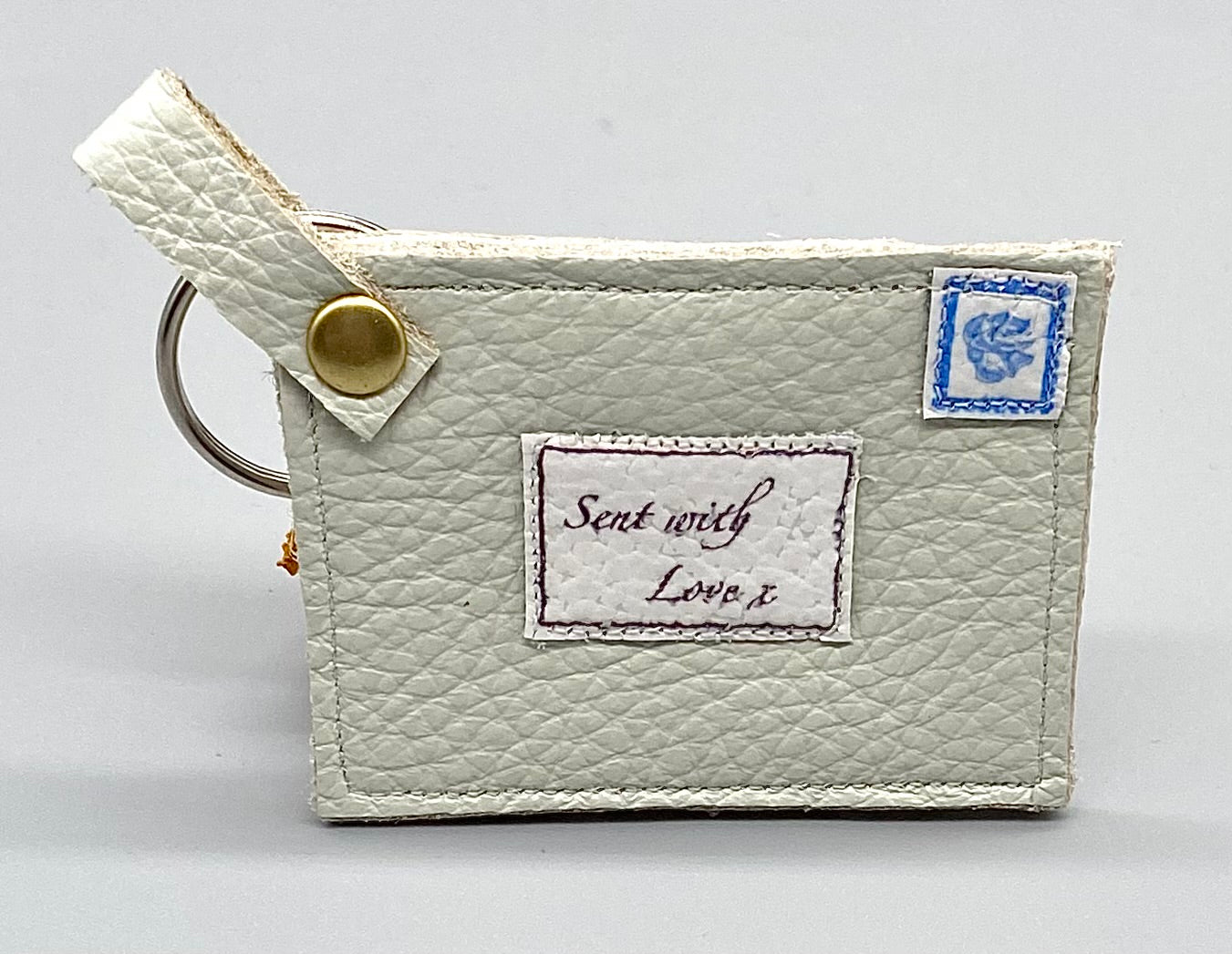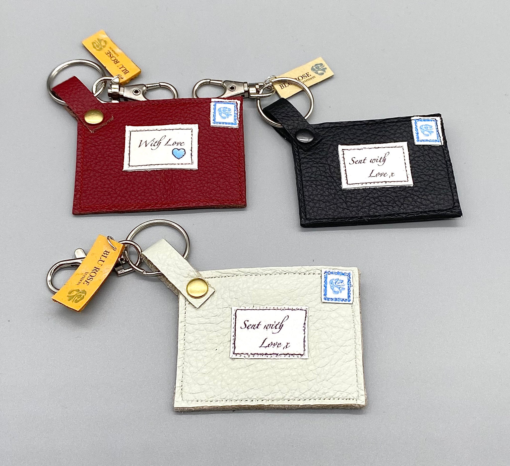 These leather keyring/bag charms are perfect for adding that romantic touch to your accessories. They come in 3 colour choices, black, red or pale mint green. Printed wording on the leather & a blue heart bead at the back give it that personal touch.