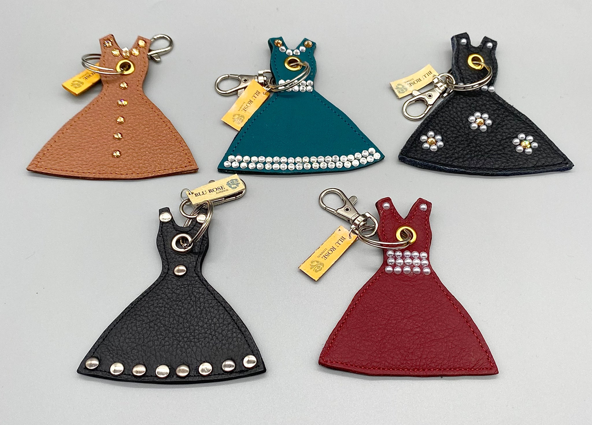 This gorgeous little dress bag charm comes in a stunning shade of teal and sparkles with rows of silver diamante rhinestones.