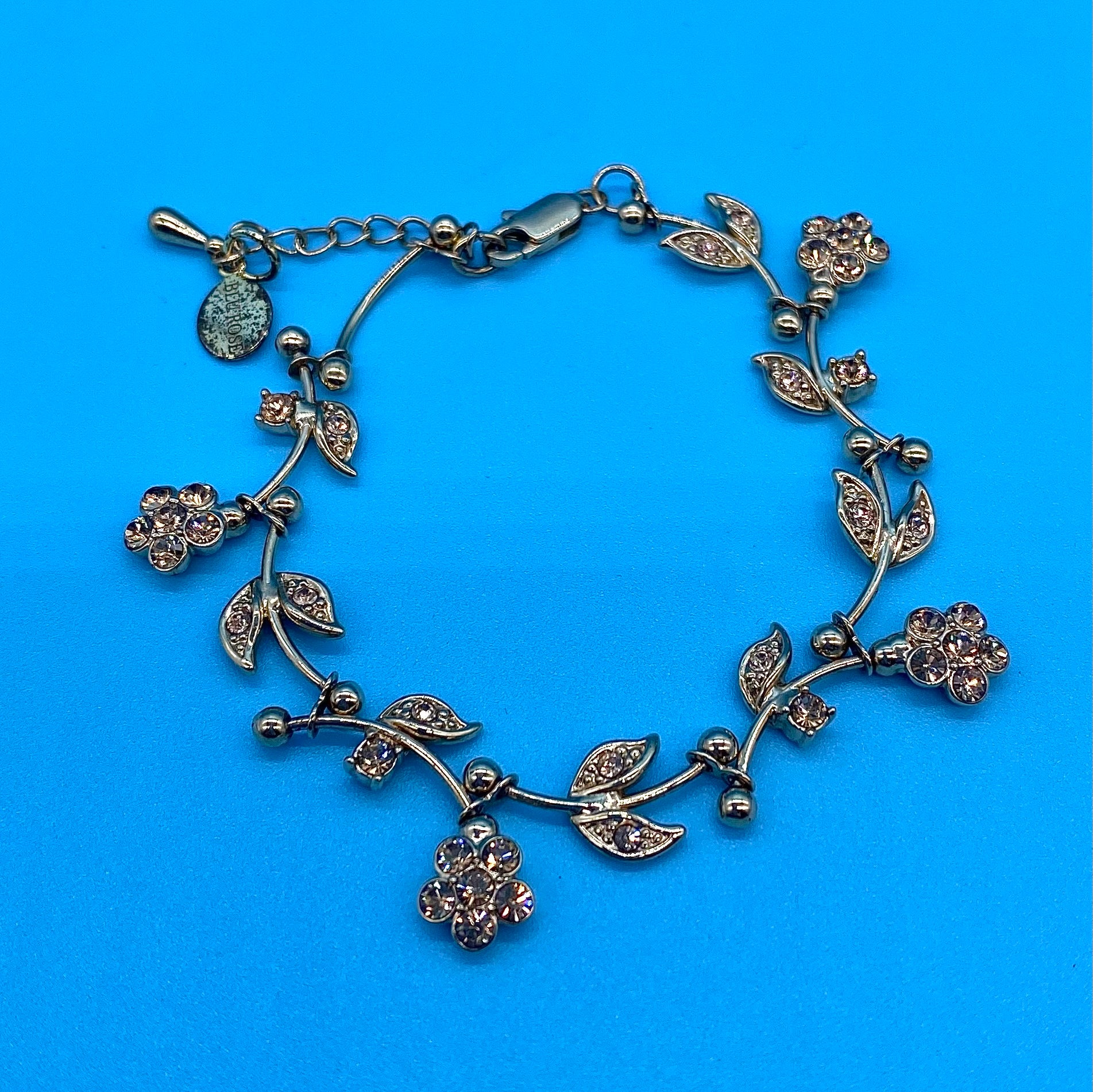 The bracelet links gold tone daisy stems which have small gold coloured crystal petals and leaves. Blu Rose has added Gold Vermeil fastenings.