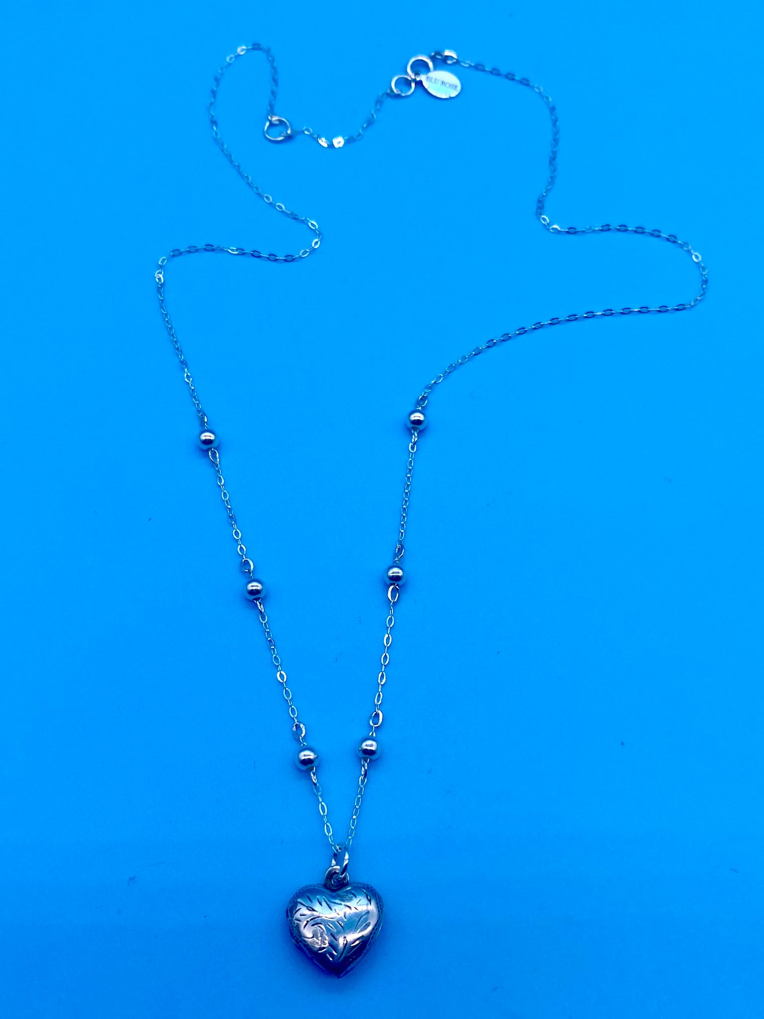 The sterling silver cable chain has sterling silver beads secured throughout with the locket free sliding.